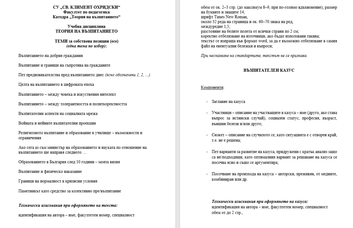 По теория на възпитанието , магистратура съм ,задочно, имах реферат и тест.